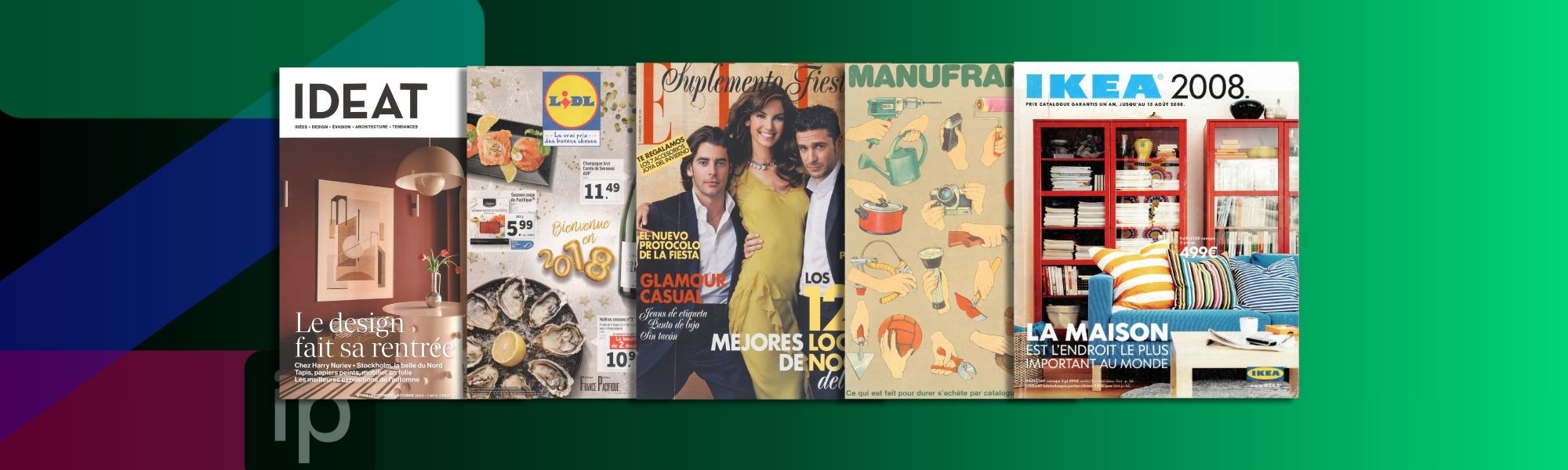 We have archives containing thousands of references dating back to the early 20th century, including magazines such as Elle, Ideat, and Harper’s Bazaar, catalogs from Manufrance, Ikea, and Argos, brochures from Leroy Merlin, Lidl, and El Cortes Ingles, and books on jewelry, toys, sneakers, perfumes, and more. We conduct research in these archives, but also on the internet, in IP registers, external databases, and museums.